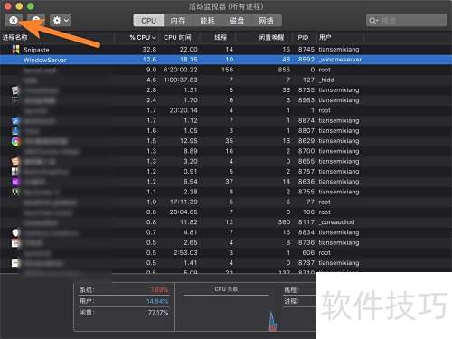 4、 在活动监视器中,选择窗口服务器,操作所示。