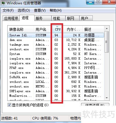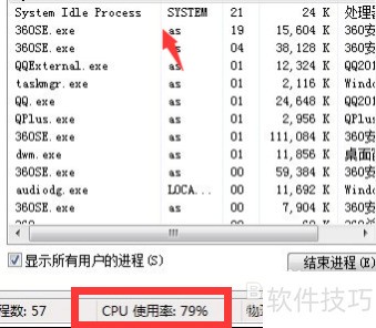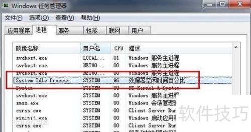 1、 在Windows XP与Windows 7系统中,用户可在任务管理器中观察到一个名为System Idle Process的进程,它用于表示处理器空闲状态。