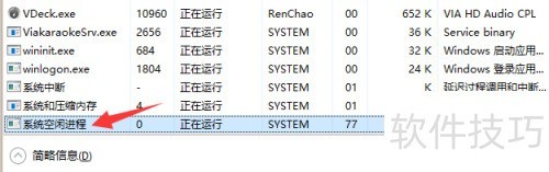 2、 在Windows 10系统中,该进程已被汉化,名称为系统空闲进程。