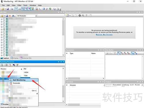 3、 选中目标进程,右键点击,在弹出的菜单中选择Start Monitoring按钮即可开始监控,具体操作所示。
