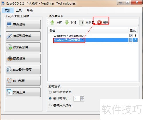 6、 条目1是系统引导目录,条目2是要删除的引导目录。