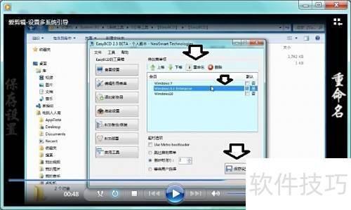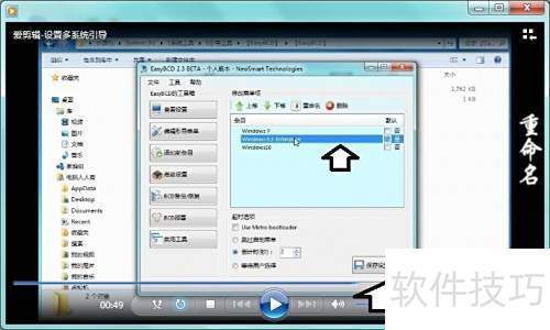 多系统环境下,系统名称与磁盘重命名不同,且系统内无法直接修改,可通过第三方工具如EasyBCD调整启动菜单中的系统名称,实现自定义显示。