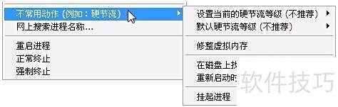 9、 Process Lasso 提供了虚拟内存整理、进程挂起等较少使用的功能,用户可通过软件右键菜单中的不常用功能选项进行选择和操作,满足特定场景下的系统管理需求。