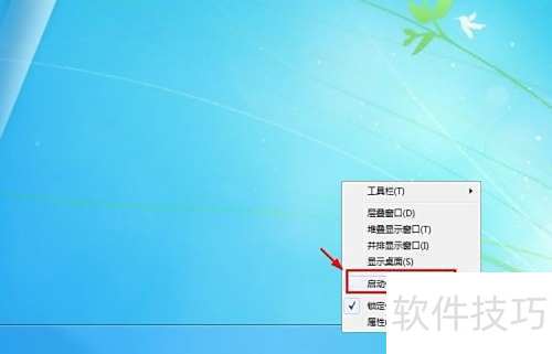 7、 在任务栏空白区域右键点击,选择启动任务管理器。