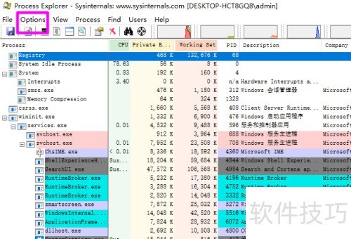 3、 启动Process Explorer后,点击界面上的选项按钮即可进行设置。