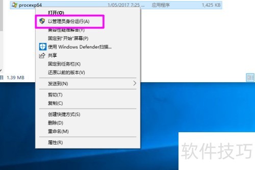1、 右键点击Process Explorer的可执行文件,选择以管理员身份运行即可启动。
