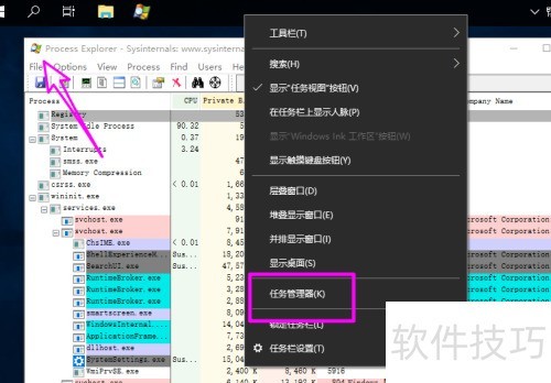 5、 用户在任务栏右键启动任务管理器时,系统将自动运行Process Explorer。