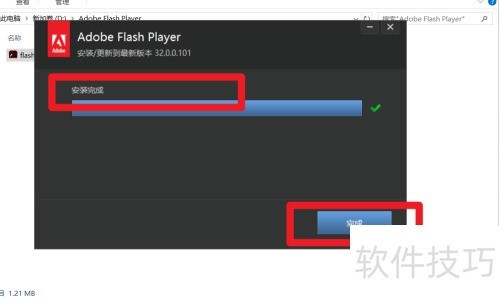8、 Adobe Flash Player开始安装,稍候片刻即可完成,具体过程所示。