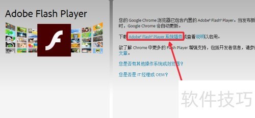 4、 在新页面中,点击此处下载并安装Adobe Flash Player系统插件。