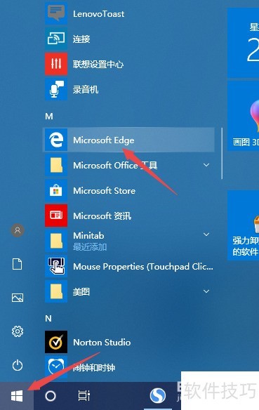 8、 点击屏幕左下角开始按钮,选择Microsoft Edge浏览器打开。