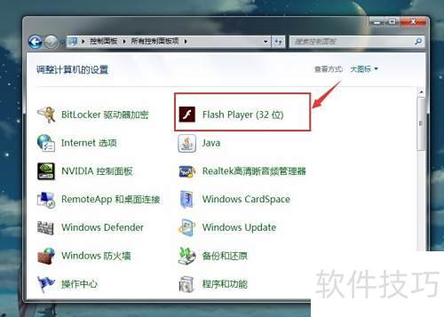 6、 关闭Adobe Flash Player自动更新其实很简单,只需通过电脑控制面板中的Flash Player图标进入设置,找到相关选项进行关闭即可,操作方便快捷。