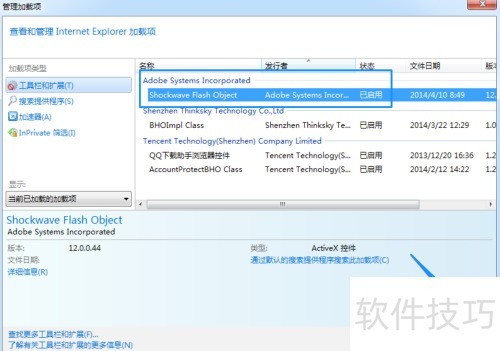 5、 如需重新启用,只需进入IE浏览器的管理加载项,找到并开启Adobe Flash Player即可恢复使用。
