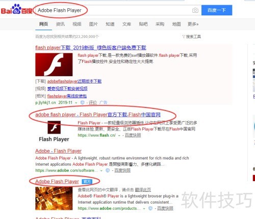 1、 在百度中搜索Adobe Flash Player,操作所示。