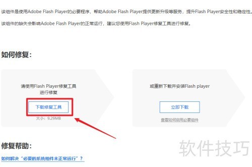 3、 下载并安装Adobe Flash Player修复工具以解决相关问题。