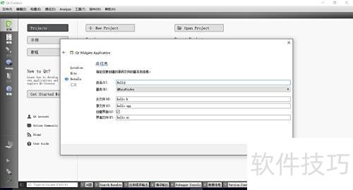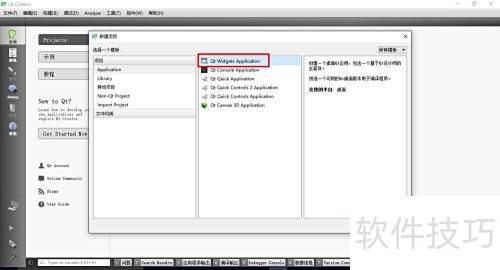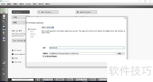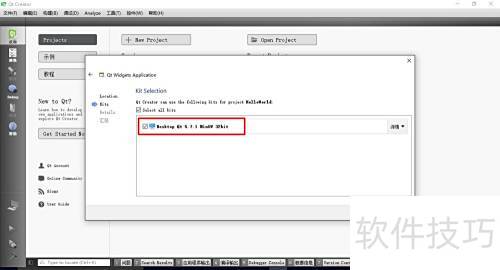 4、 创建一个简单的Qt Widgets项目,在选择开发套件时选用Qt MinGW 32位版本,这相当于指定了Qt的编译环境。
