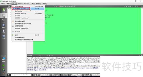5、 创建完Qt项目后,可通过菜单中的→来生成可执行的exe文件。然而,直接运行该exe时,系统常会提示缺少某些dll文件。这是因为程序在运行时无法在当前路径找到所需的动态链接库,而这些库实际位于Qt的安装目录下。为解决此问题,只需将Qt安装目录中的bin路径添加到系统的环境变量Path中。完成此设置后,系统便能在运行时正确查找并加载所需的dll文件。经过上述操作,Qt Creator即可正常使用,顺利进行C++程序的开发与调试,无需再因缺失库文件而无法运行生成的程序,极大提升了开发效率与运行稳定性。