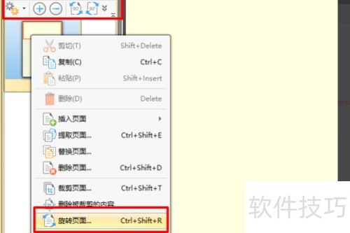 4、 点击缩略图后,可通过工具栏设置,或选中缩略图右键点击,选择旋转页面功能进行操作。
