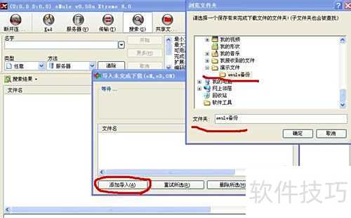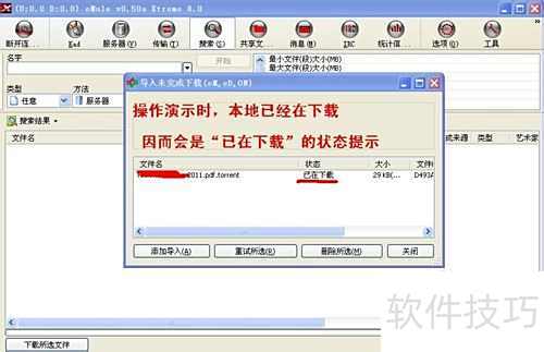 5、 当本地eMule中无相同下载任务时,导入备份文件夹后将直接开始下载。若存在相同任务,则会弹出5所示的提示框。此时可对比本地与备份任务的下载进度,若本地进度较慢,建议先删除本地任务,再导入备份文件,以确保从较高进度继续下载,提升效率。