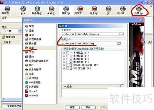1、 当网络环境发生变化时,应先备份尚未下载完成的临时文件。1所示,打开eMule的选项菜单,选择目录选项,即可查看临时文件的存储路径。