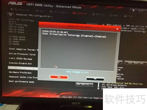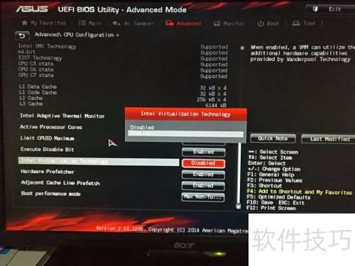 10、 将虚拟化技术选项设为启用状态,保存更改后按F10退出即可完成设置。