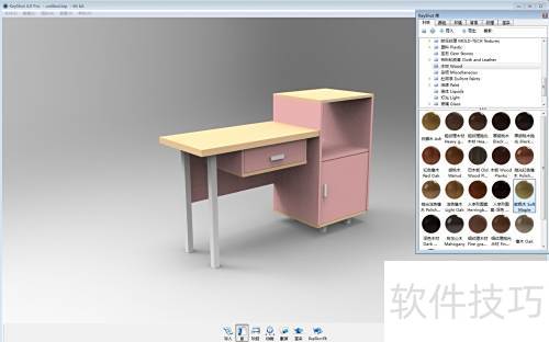 5、 启动KeyShot,导入之前保存的3ds文件,选择合适材质,用鼠标拖拽并施加到家具模型上。
