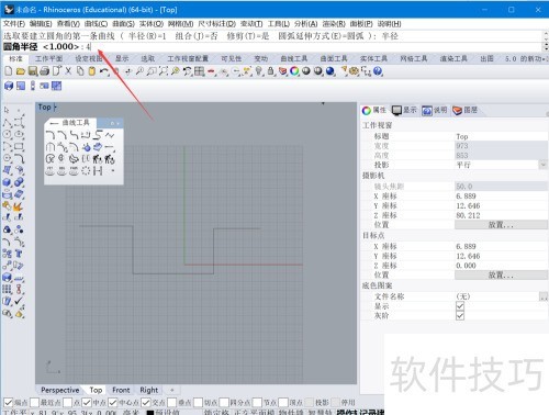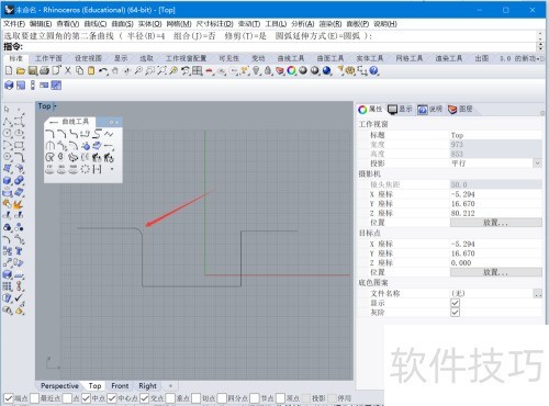 7、 选用第一个工具进行演示:点击,选取需要倒角连接的首条曲线。