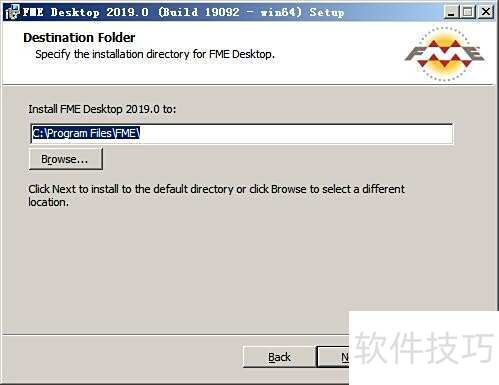 3、 点击下一步选择安装路径,默认目录为C:Program FilesFME。