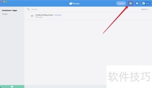 2、 启动Docker Desktop,点击右上角齿轮图标进入设置界面。