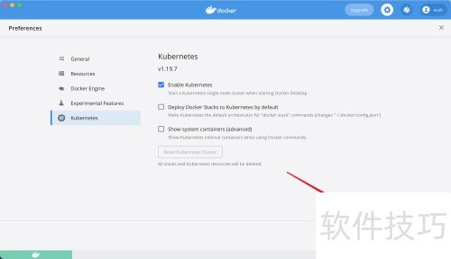 在Docker Desktop的设置中可开启Kubernetes功能,操作简便,便于本地部署和测试容器化应用。
