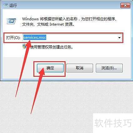 2、 进入主界面后,在打开(O)栏中输入services.msc(服务命令),然后点击下方的确定按钮即可。