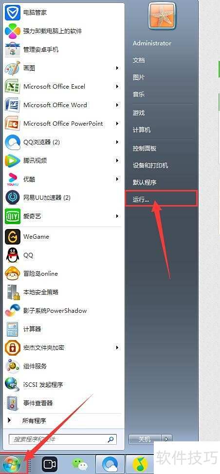 1、 启动电脑后,依次点击开始菜单和运行选项,即可进入运行主界面。