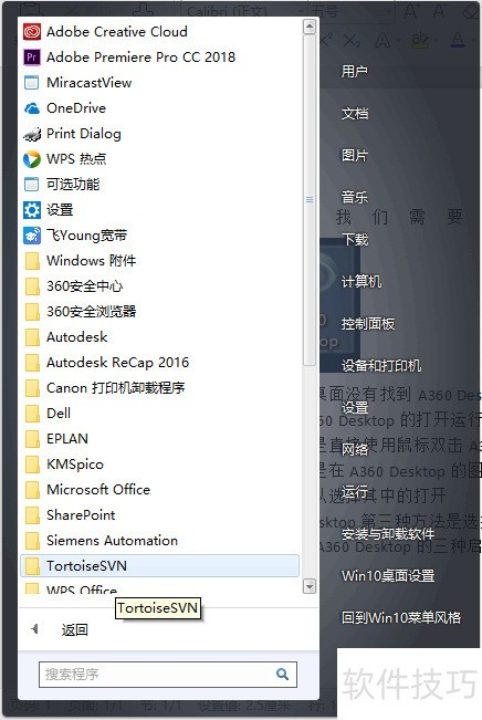 2、 若桌面上未见A360 Desktop,可尝试在开始菜单中查找该程序图标。