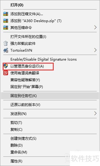 7、 第三种方法是右键选择以管理员身份运行A360 Desktop程序。