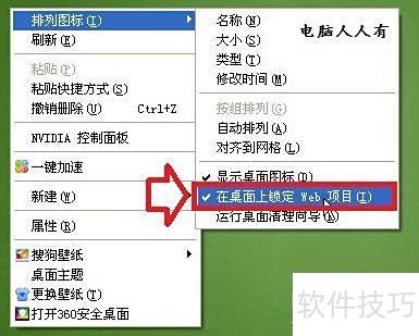 1、 在桌面空白处右击,选择排列图标,取消勾选在桌面上锁定Web项目即可。