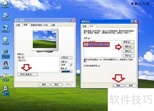 2、 刷新桌面或重启电脑可恢复普通背景。若无效,右键点击桌面空白处,依次选择属性、显示属性、桌面、自定义桌面、Web,找到当前使用的Active Desktop活动桌面,将其选中后删除,最后连续点击确定完成设置。