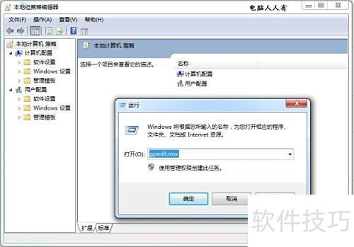 6、 点击开始菜单,选择运行,输入gpedit.msc后按回车,即可启动组策略编辑器。