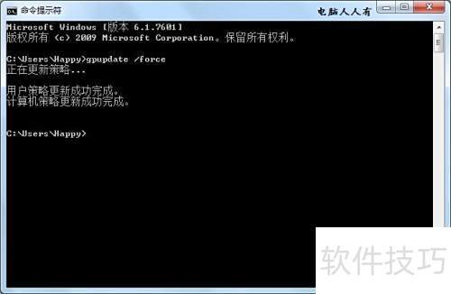 9、 在命令提示符中输入 gpupdate /force 并回车,执行该命令以刷新组策略,此后系统将不再自动启用活动桌面功能。