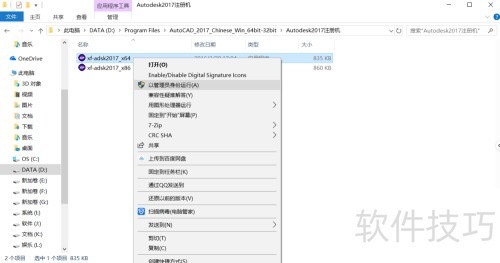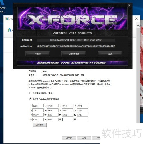 4、 打开软件并选择激活,以管理员身份运行激活工具,将申请号复制到工具中,点击生成激活码,最后输入激活码完成激活操作。