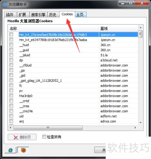 5、 在Glary Utilities浏览器助手的Cookies选项中点击即可选择删除。
