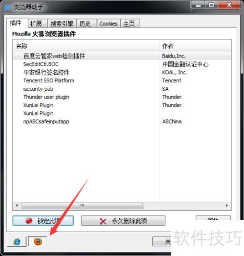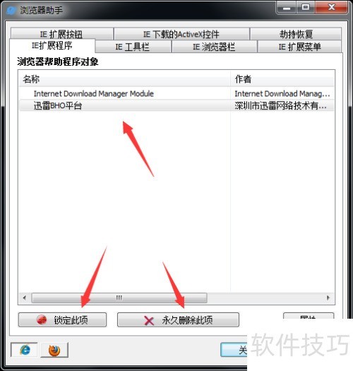 2、 在Glary Utilities主界面进入浏览器助手,查看已安装的扩展程序,可选择锁定或永久移除不需要的项目。