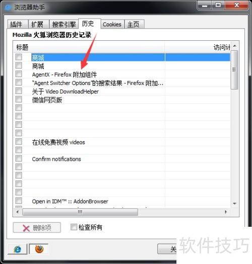 4、 在Glary Utilities浏览器助手的历史记录中,可点击选择并删除相关内容。