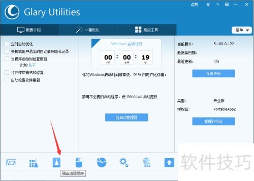 1、 使用Glary Utilities可便捷清理硬盘,先下载安装软件,随后在界面底部点击硬盘清理功能即可操作。