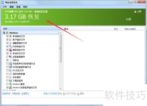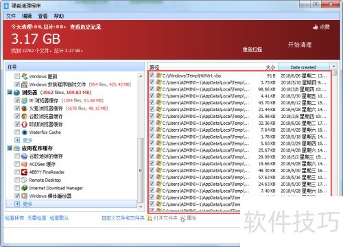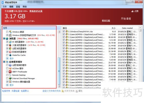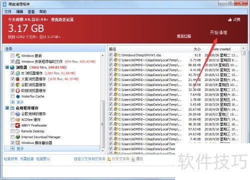 5、 选定需清理的硬盘垃圾后,直接点击软件右上角的开始清理按钮即可完成操作。