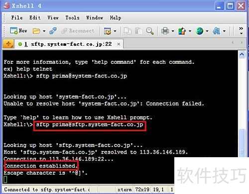 4、 七、图八所示,通过SFTP连接至 prima@sftp.system-fact.co.jp 进行文件传输操作。