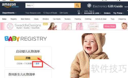 4、 通过该入口进入后,会跳转至Baby registry的登录界面,页面上明确标有加入计划的提示。点击蓝色的登录按钮后,可进入登录页面。若已有账户,直接输入账号密码即可;若无账户,则需注册新账号。注册时需使用有效邮箱,且务必妥善保存所设置的用户名与密码,避免后续因遗忘而造成找回流程的不便。