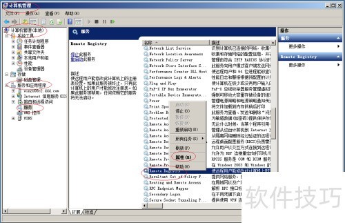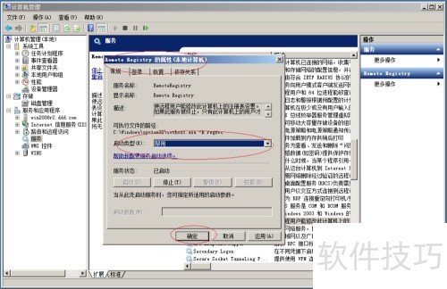 在使用Windows Server 2008 R2时,若需禁用Remote Registry服务,可按以下步骤操作。首先打开服务管理界面,找到该服务项,右键选择属性,将其启动类型设为禁用,然后停止服务并确认生效。