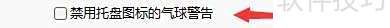 5、 在弹出的窗口里,勾选禁用托盘图标的气球提示选项。