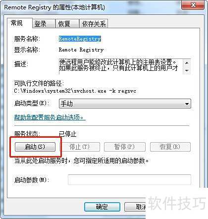 在Win7系统中,通过运行services.msc找到Remote Registry服务并启动即可。