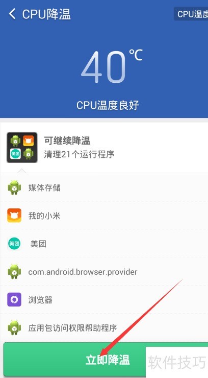 4、 扫描完成后,系统将显示扫描成功提示,并呈现当前CPU温度状态,下方提供立即降温选项,选择该选项即可开始降温操作。