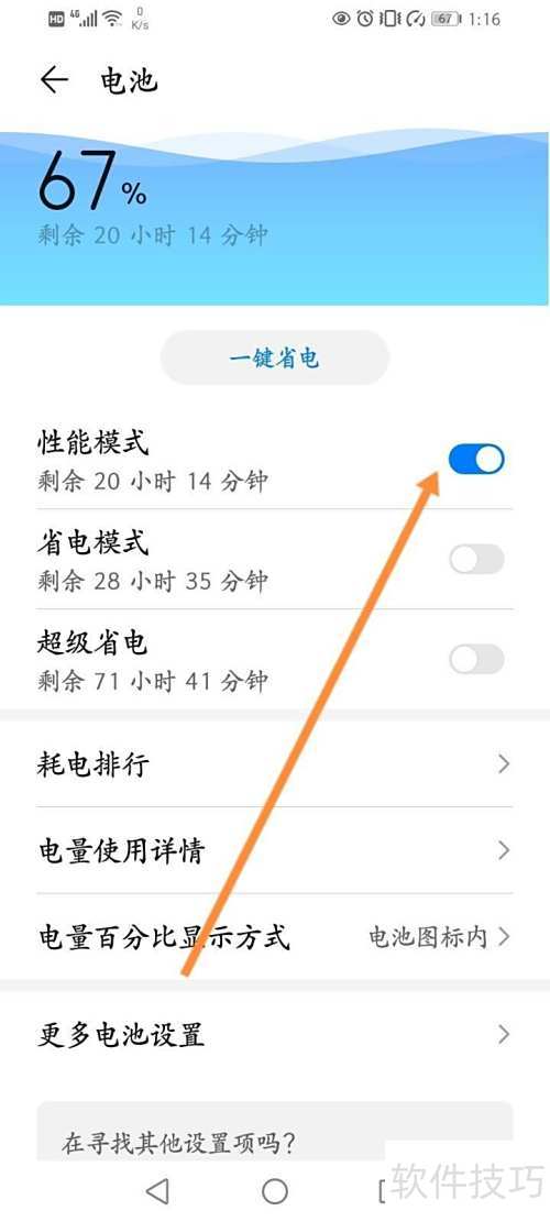 8、 关闭手机性能模式,开启省电模式,有助于减缓设备发热。